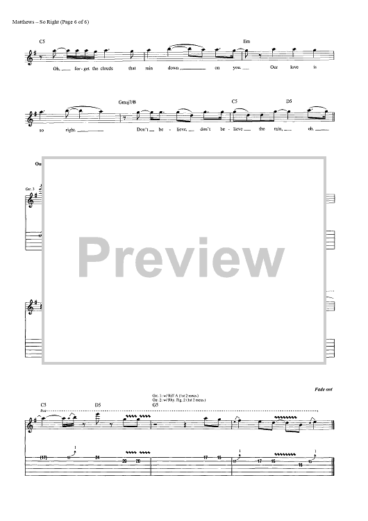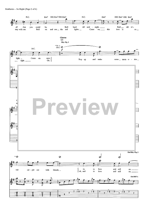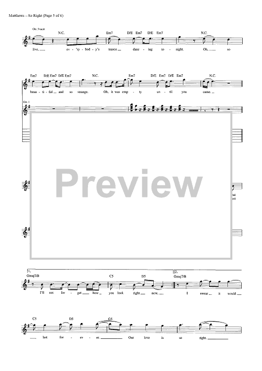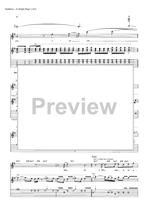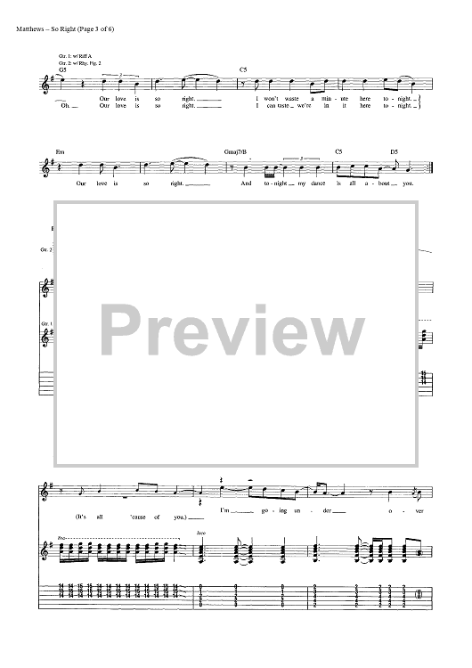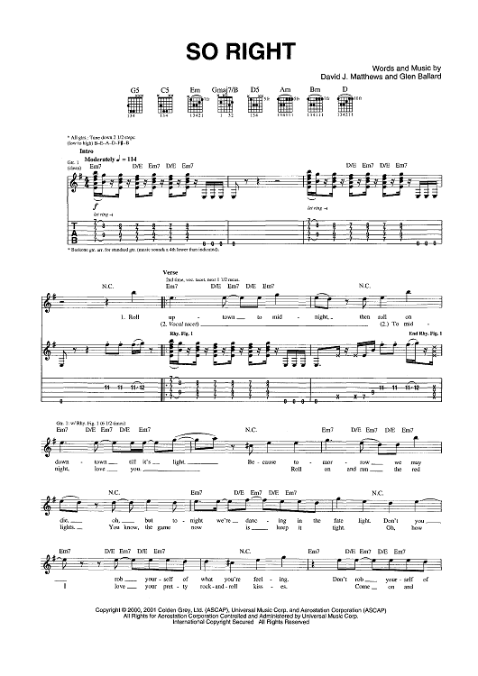 Digital Sheet Music for So Right by Glen Ballard, Dave Matthews Band, Dave Matthews scored for Guitar Tab/Vocal; id:448274