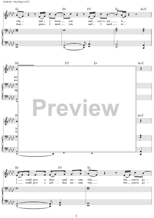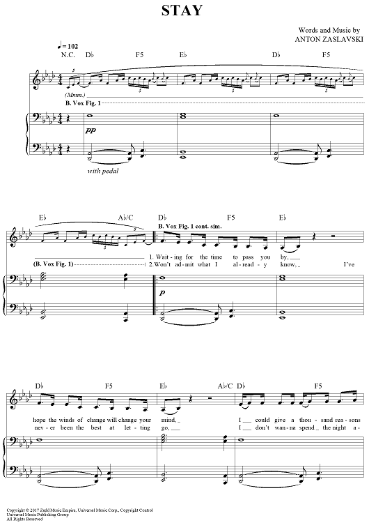 Digital Sheet Music for Stay by Anton Zaslavski, Zedd, Alessia Cara scored for Piano/Vocal/Chords; id:464102