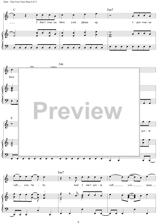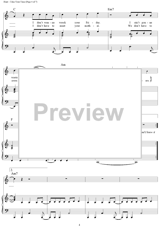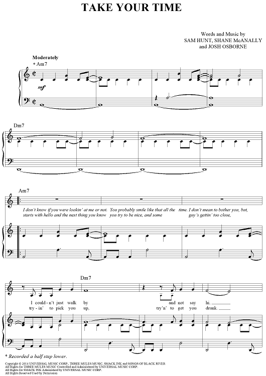 Digital Sheet Music for Take Your Time by Shane McAnally, Sam Hunt, Josh Osborne scored for Piano/Vocal/Chords; id:448792