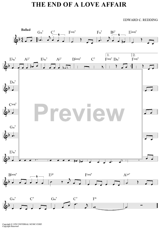 Digital Sheet Music for The End of a Love Affair by Edward C. Redding scored for Lead Sheet; id:448584