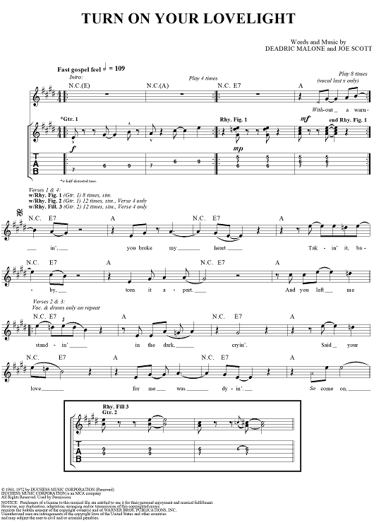 "Turn on Your Lovelight" Sheet Music by Grateful Dead