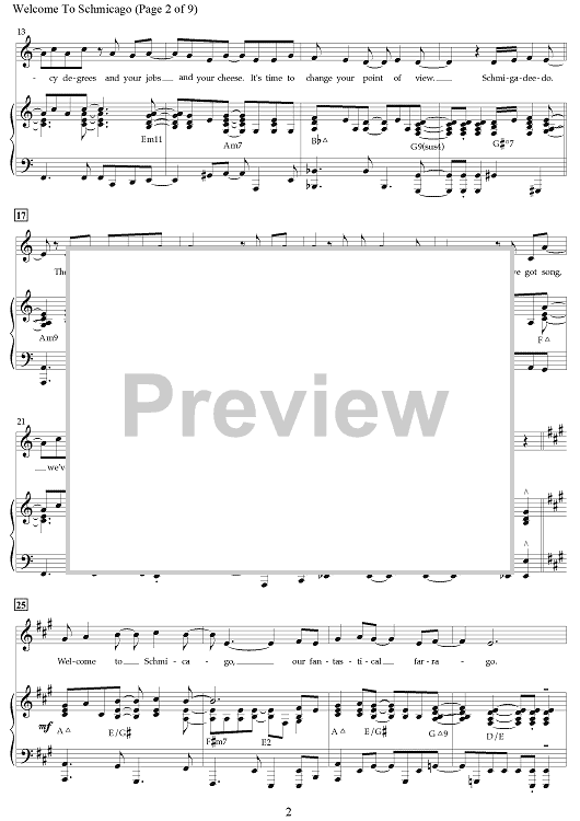 Digital Sheet Music for Welcome to Schmicago by Brian Chase, Cinco Paul, Doug Besterman scored for Piano/Vocal/Chords; id:500331