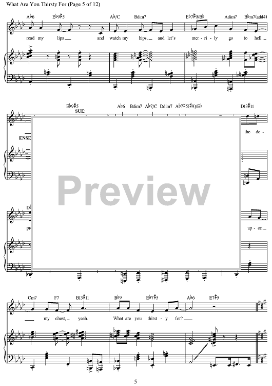 Digital Sheet Music for What Are You Thirsty For? by Marc Shaiman, Scott Wittman scored for Piano/Vocal/Chords; id:500305