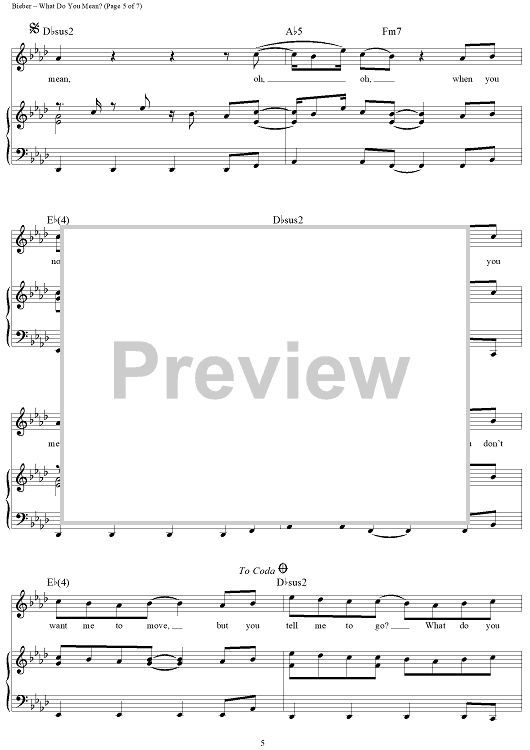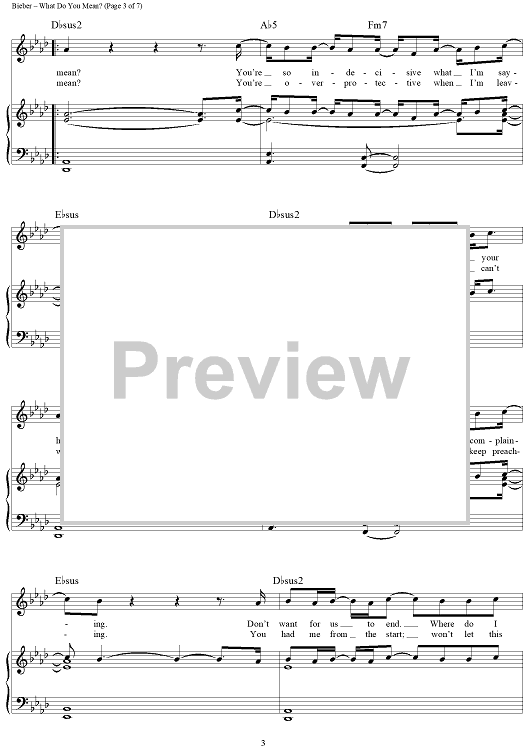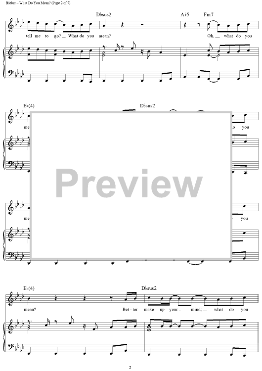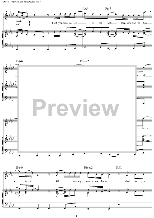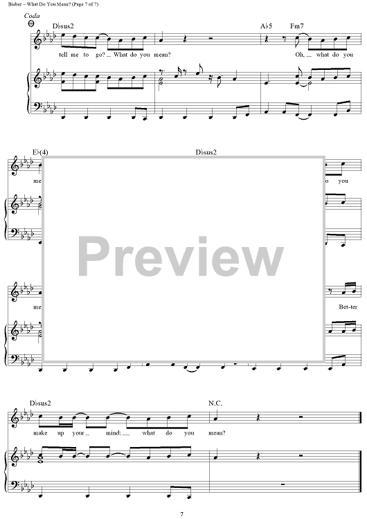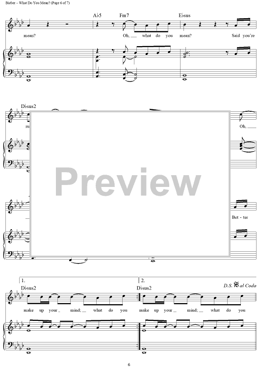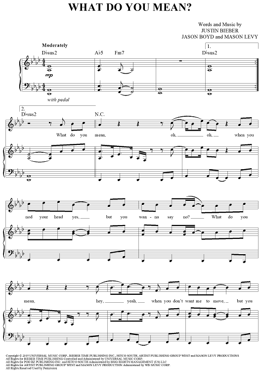 Digital Sheet Music for What Do You Mean? by Jason Boyd, Justin Bieber, Mason Levy scored for Piano/Vocal/Chords; id:454430