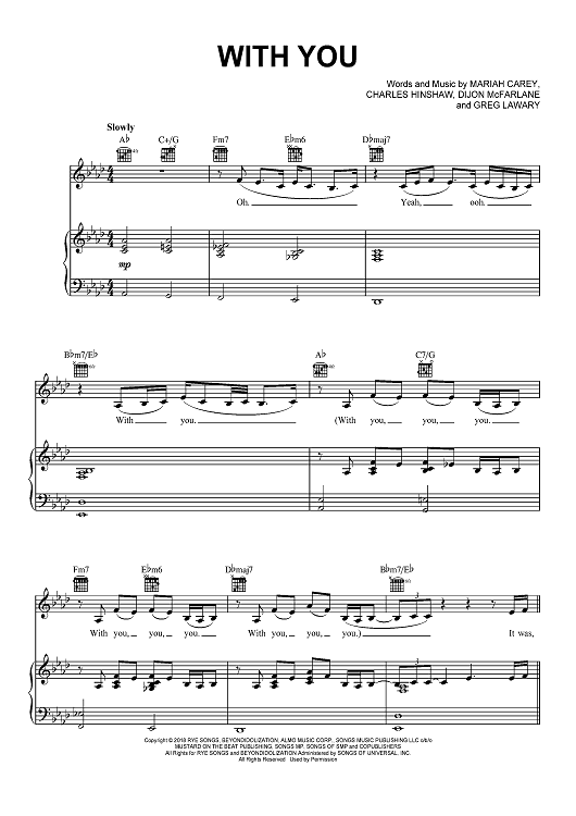 Digital Sheet Music for With You by Mariah Carey, Charles A. Hinshaw Jr., Dijon McFarlane, Greg Lawary scored for Piano/Vocal/Chords; id:466872