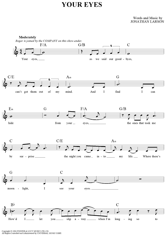 "Your Eyes" Sheet Music by Jonathan Larson
