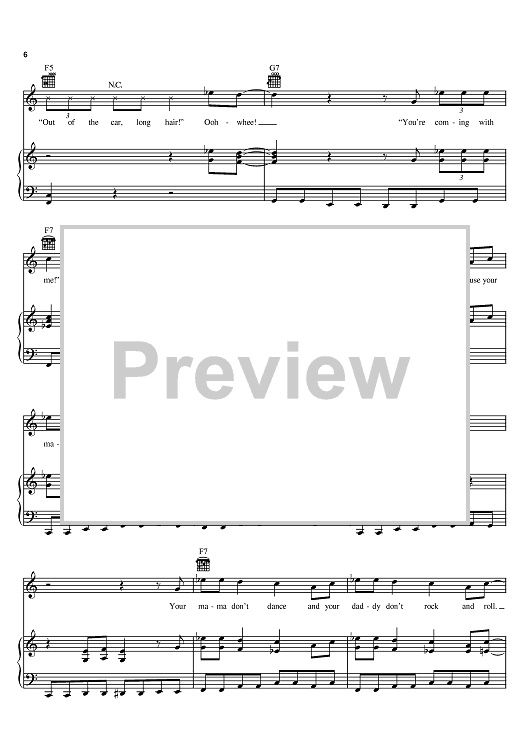 Digital Sheet Music for Your Mama Don't Dance by Kenny Loggins, Poison, Jim Messina, Loggins and Messina scored for Piano/Vocal/Chords; id:367434