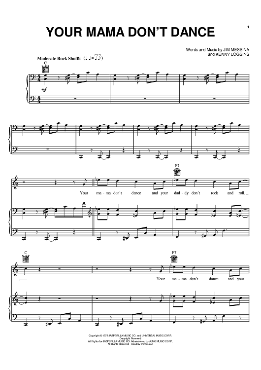 "Your Mama Don't Dance" Sheet Music by Kenny Loggins