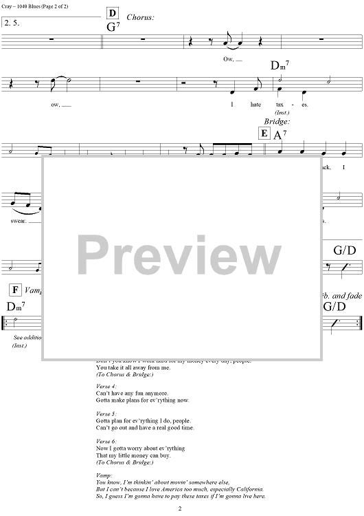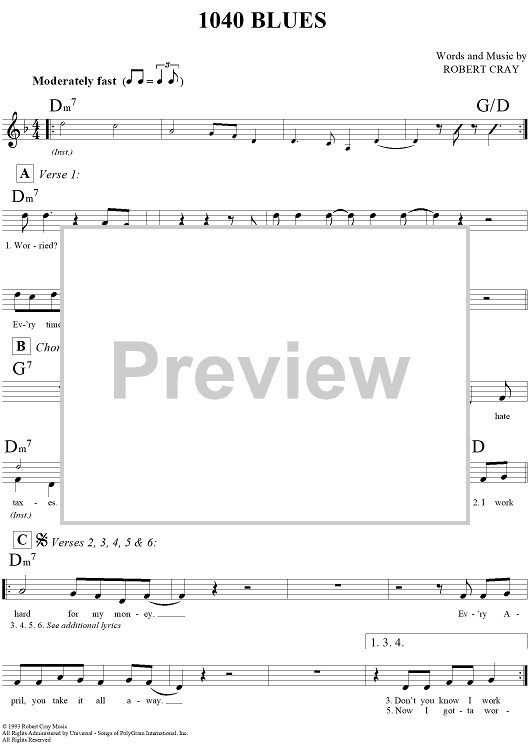 Digital Sheet Music for 1040 Blues by Robert Cray scored for Lead Sheet; id:290768