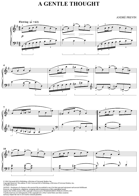 Digital Sheet Music for A Gentle Thought by Andre Previn scored for Piano Solo; id:287379