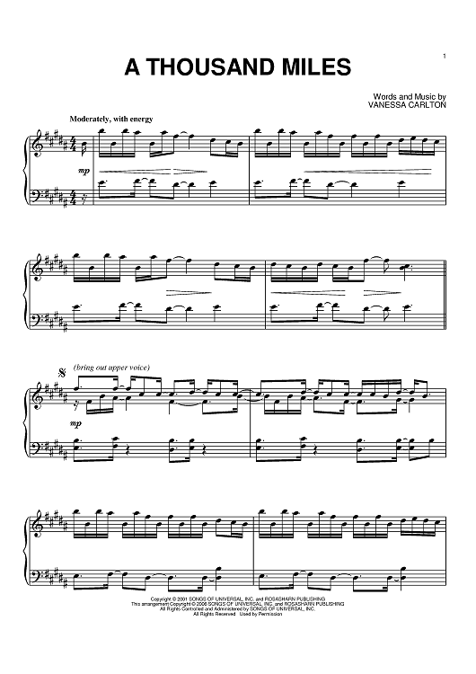 "A Thousand Miles" Sheet Music by Vanessa Carlton