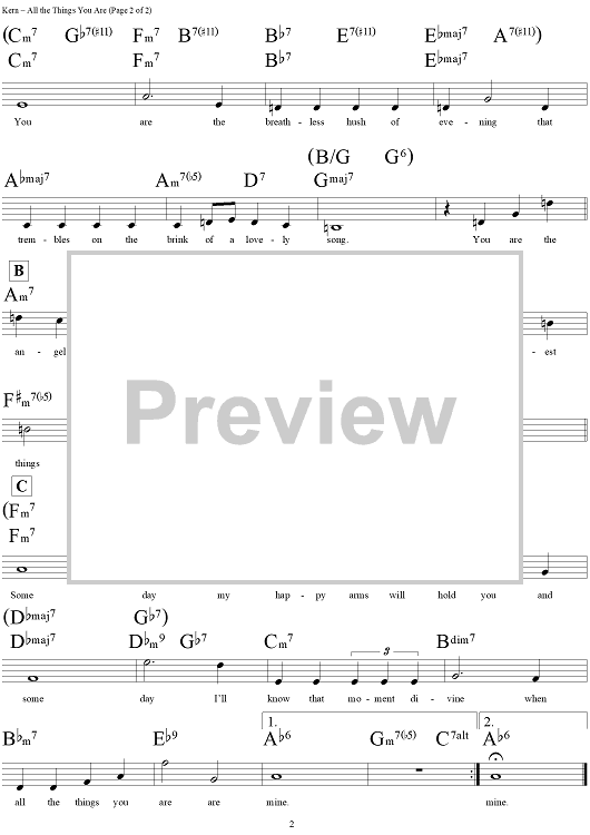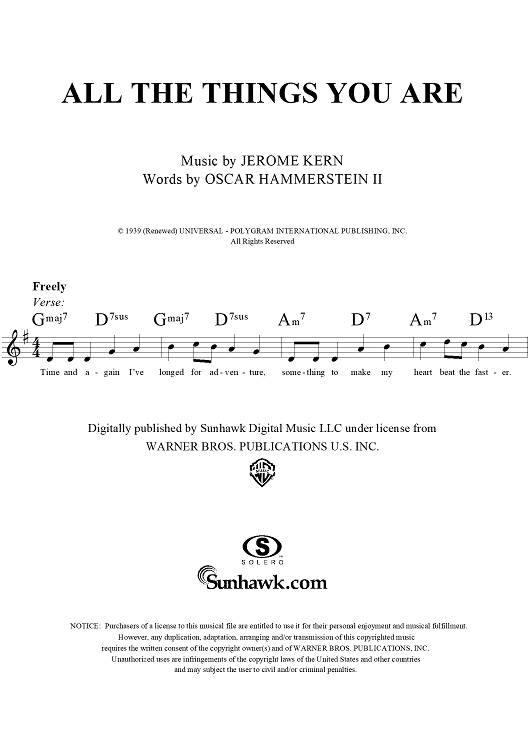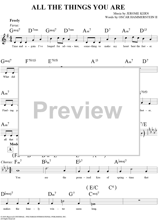 Digital Sheet Music for All the Things You Are by Jerome Kern, Oscar Hammerstein II scored for Lead Sheet; id:287637