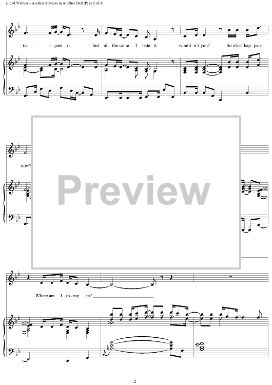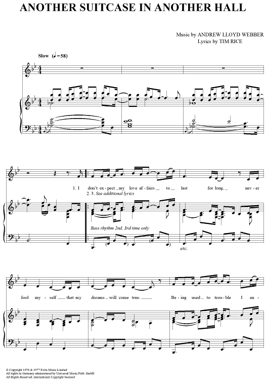 Digital Sheet Music for Another Suitcase in Another Hall by Andrew Lloyd Webber, Tim Rice, Madonna scored for Piano/Vocal; id:394453