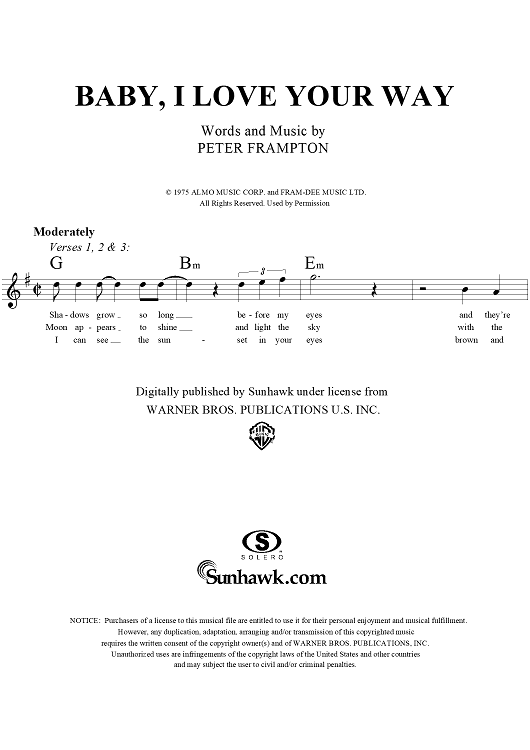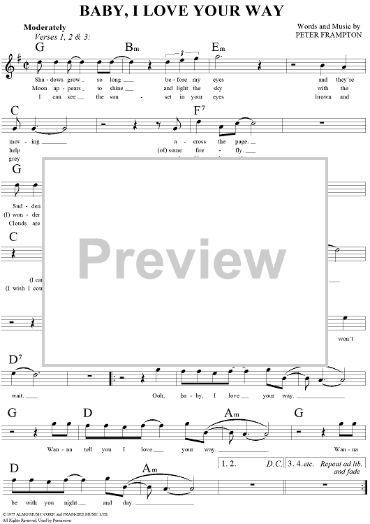 Digital Sheet Music for Baby, I Love Your Way by Peter Frampton scored for Lead Sheet; id:119825