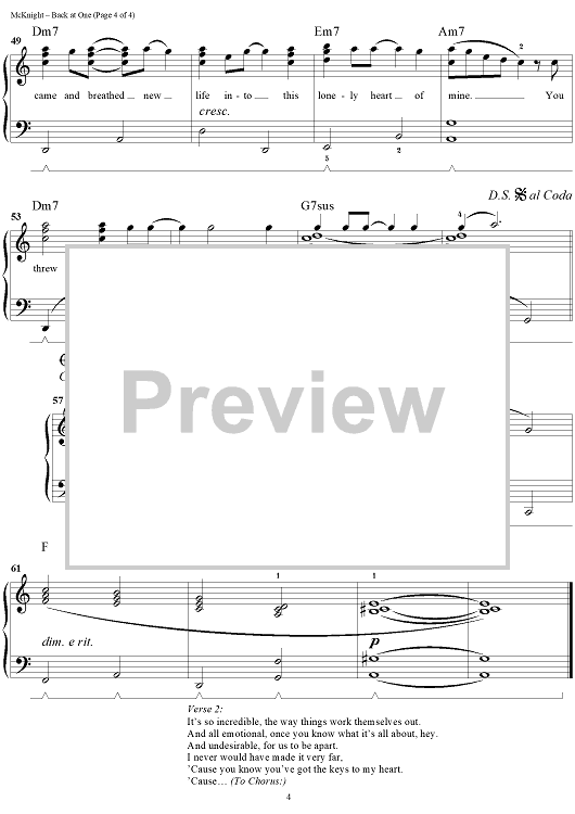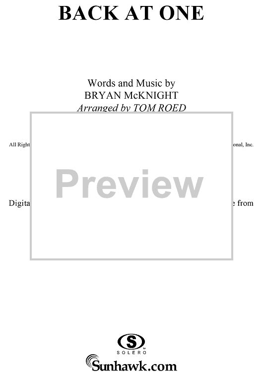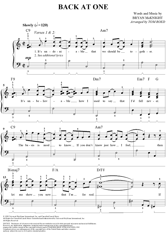 Digital Sheet Music for Back at One by Tom Roed, Brian McKnight scored for Easy Piano/Vocal; id:289452