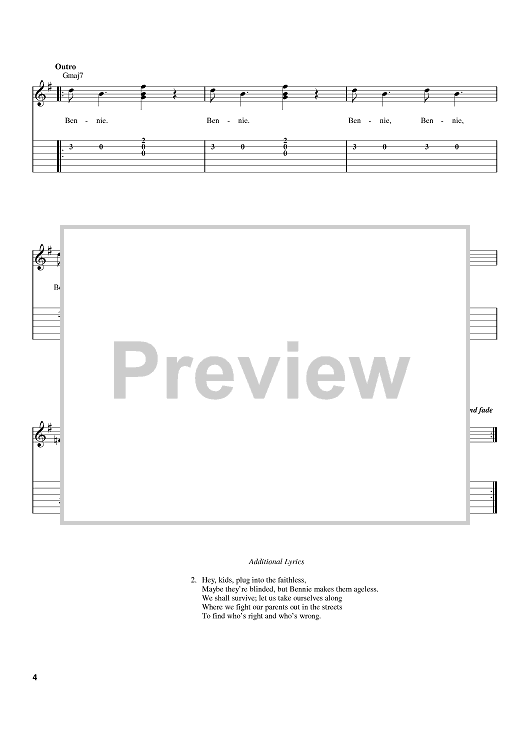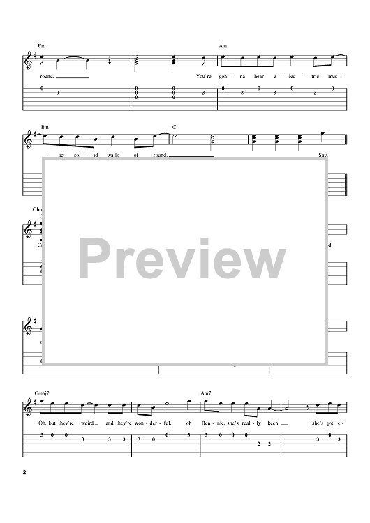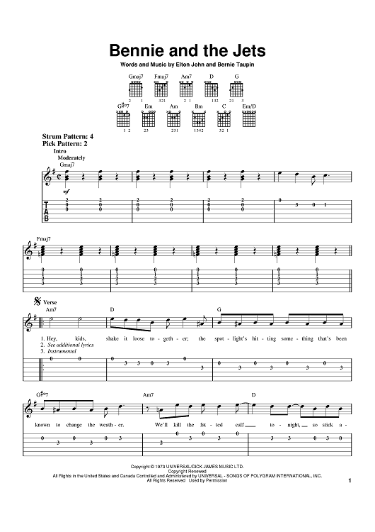 Digital Sheet Music for Bennie And The Jets by Elton John, Bernie Taupin scored for Easy Guitar Tab; id:387950