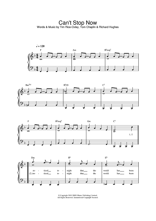 Digital Sheet Music for Can't Stop Now by Keane, Tim Rice-Oxley, Tom Chaplin, Richard David Hughes scored for Piano; id:380902
