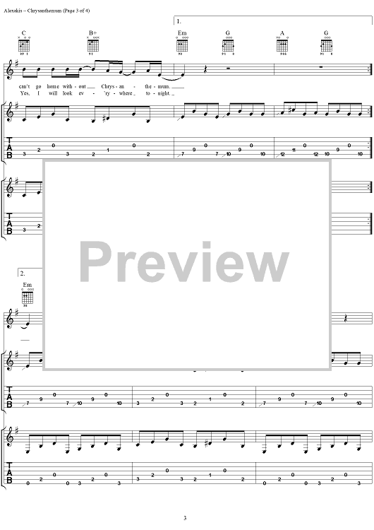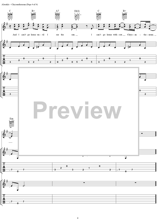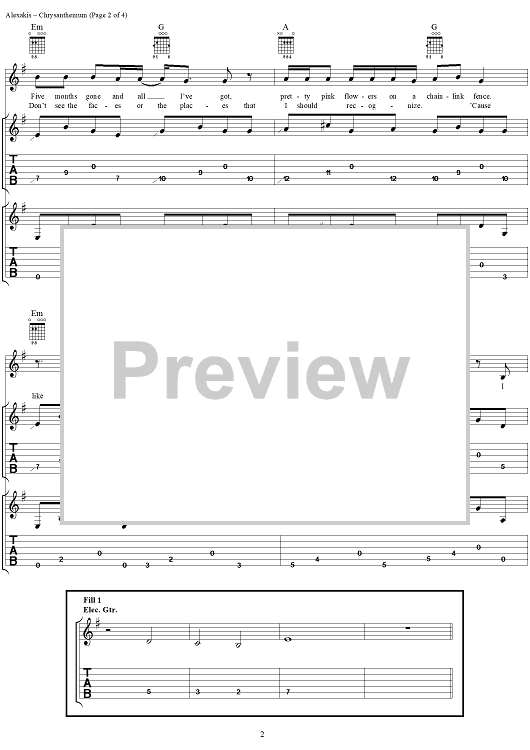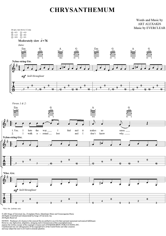 Digital Sheet Music for Chrysanthemum by Everclear, Art Alexakis scored for Guitar Tab/Vocal; id:303016