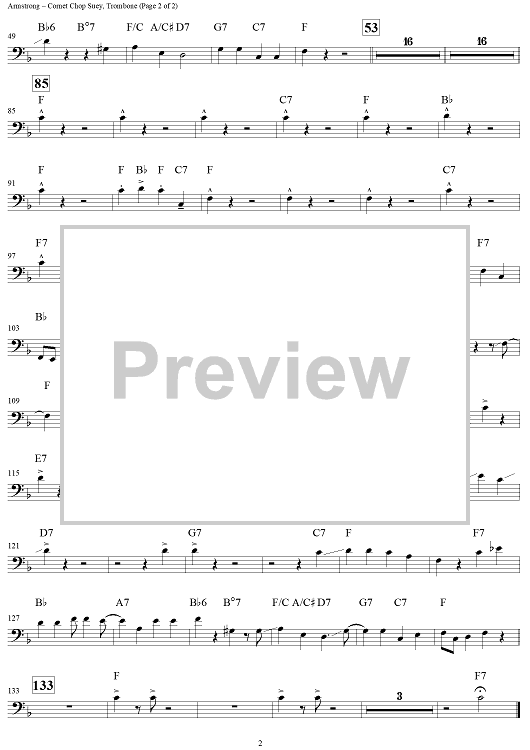 Digital Sheet Music for Cornet Chop Suey - Trombone by , Louis Armstrong, Louis Armstrong and His Hot Five scored for Jazz Ensemble; id:308477