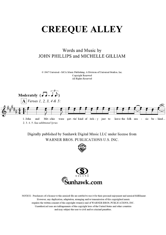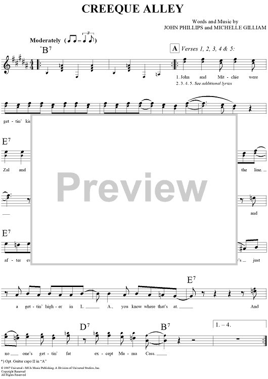 "Creeque Alley" Sheet Music by The Mamas and The Papas