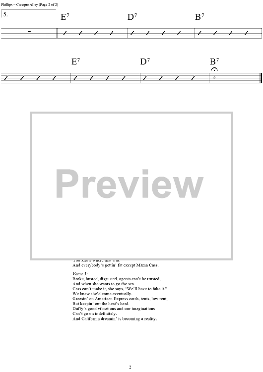 Digital Sheet Music for Creeque Alley by The Mamas and The Papas, Michelle Phillips, John Phillips scored for Lead Sheet; id:293878