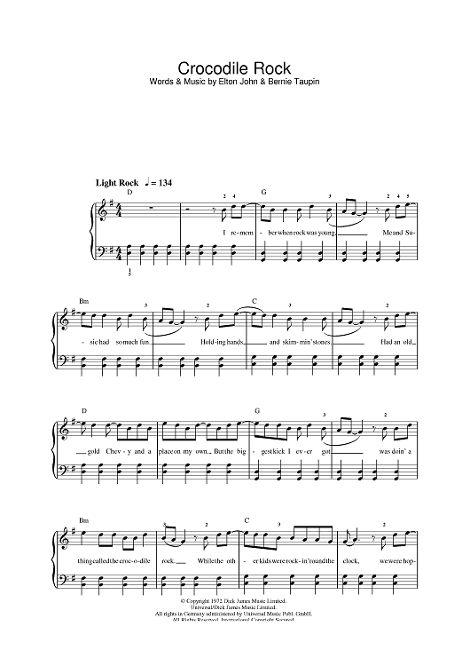 Digital Sheet Music for Crocodile Rock by Elton John, Bernie Taupin scored for Easy Piano; id:401222