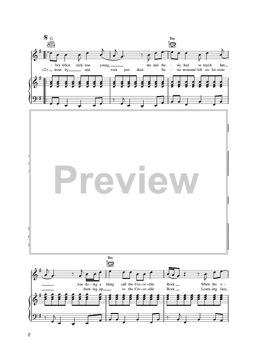 Digital Sheet Music for Crocodile Rock by Elton John, Bernie Taupin scored for Piano/Vocal/Chords; id:401223