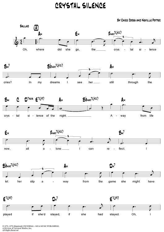 Digital Sheet Music for Crystal Silence by , Chick Corea, Neville Potter scored for Lead Sheet; id:307940