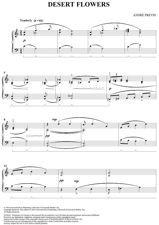 Digital Sheet Music for Desert Flowers by Andre Previn scored for Piano Solo; id:287446