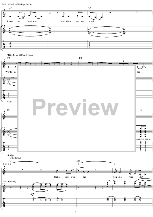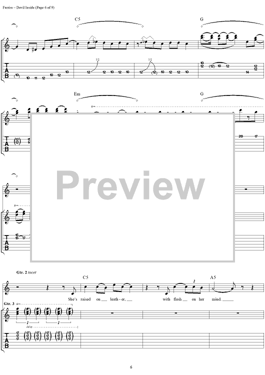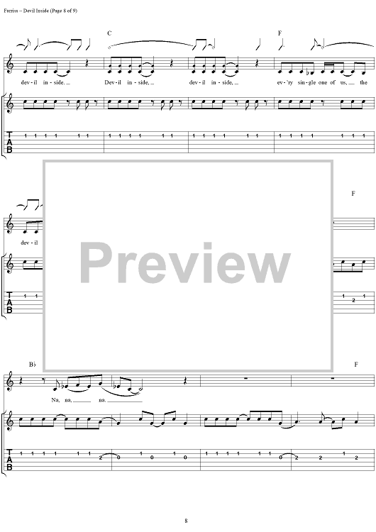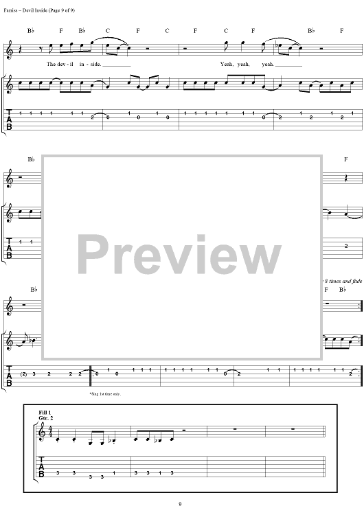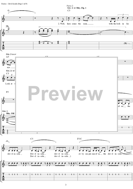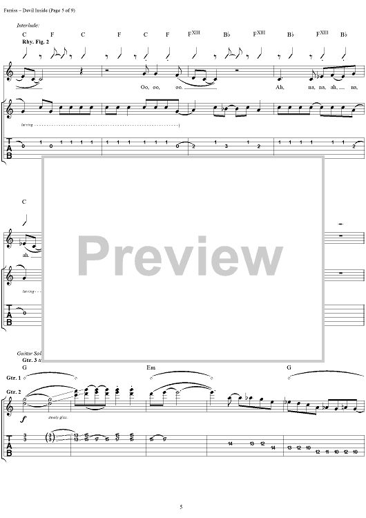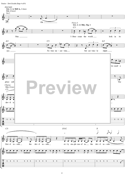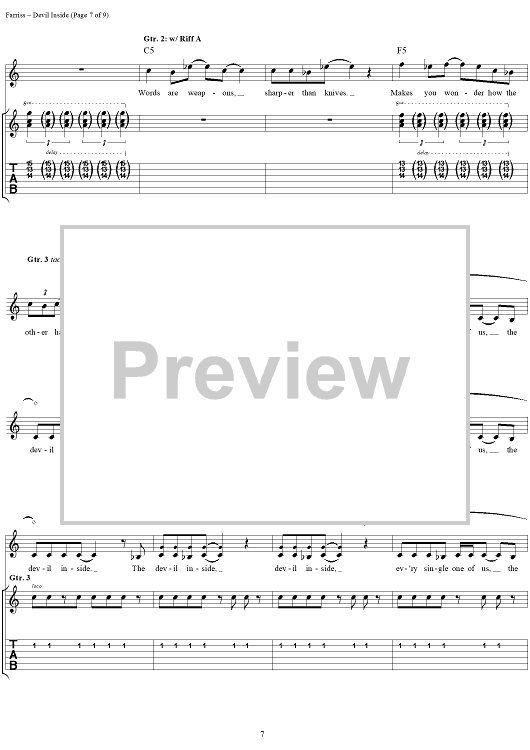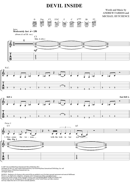 Digital Sheet Music for Devil Inside by INXS, Andrew Farriss, Michael Hutchence scored for Easy Guitar Tab/Vocal; id:234791
