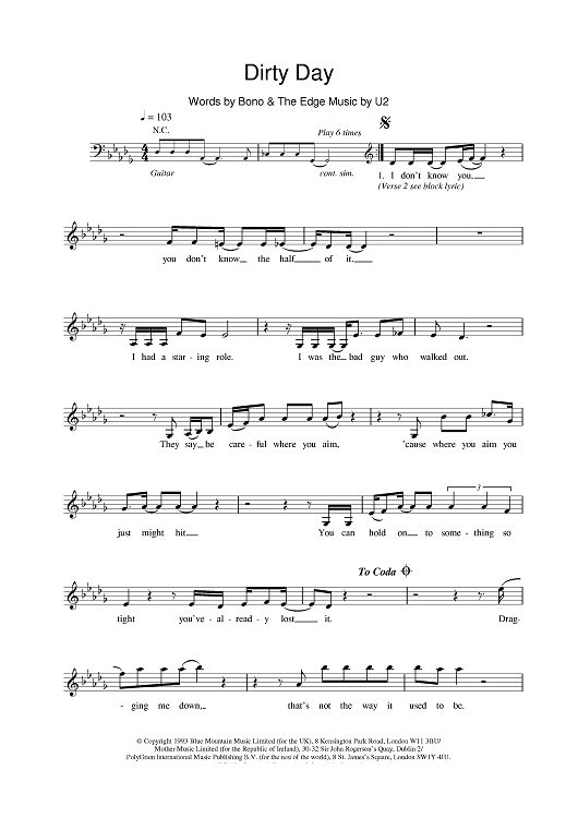Digital Sheet Music for Dirty Day by U2 scored for Lead Sheet; id:376926