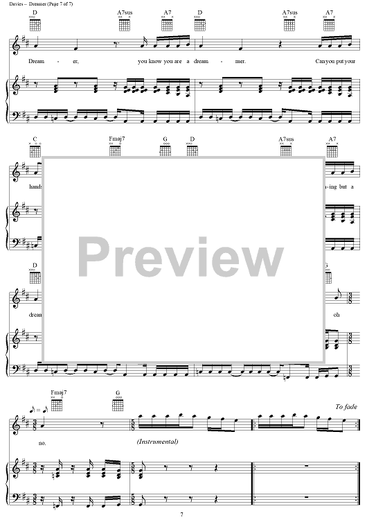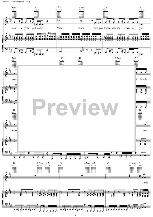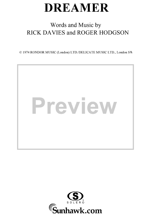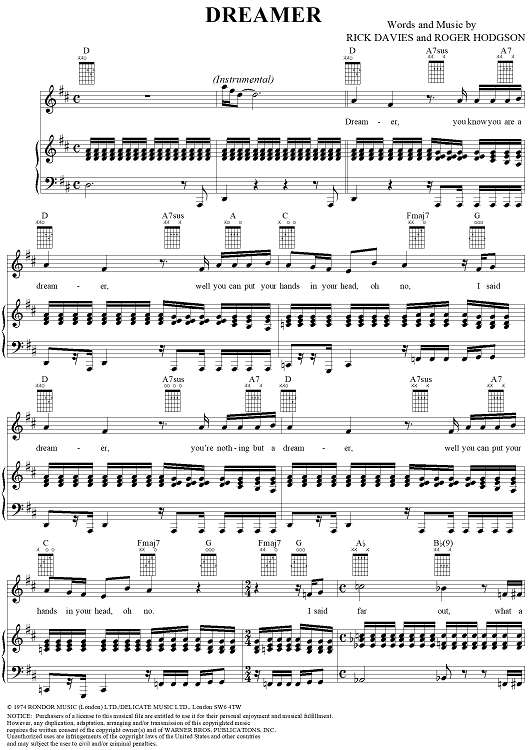 Digital Sheet Music for Dreamer by Rick Davies, Roger Hodgson, Supertramp scored for Piano/Vocal/Chords; id:124115