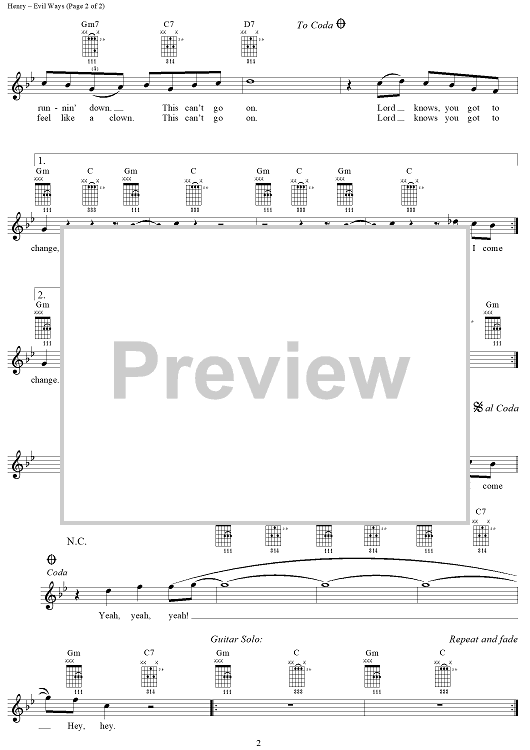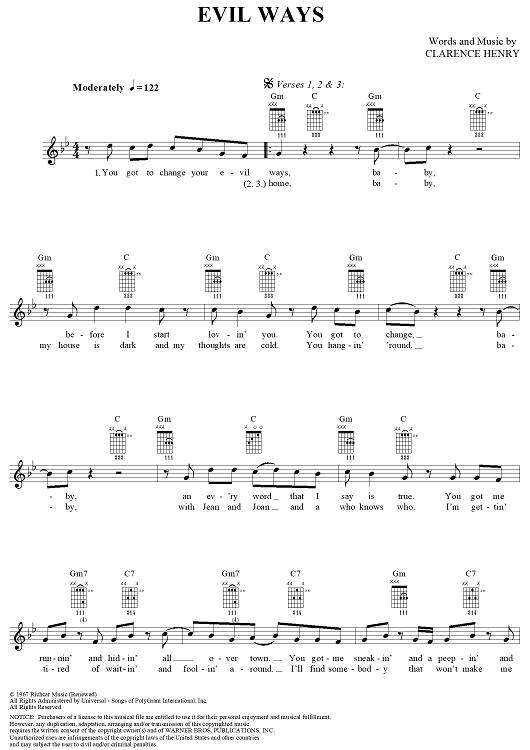 Digital Sheet Music for Evil Ways by Carlos Santana, Clarence Henry scored for Lead Sheet; id:283243