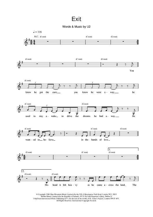 Digital Sheet Music for Exit by U2 scored for Lead Sheet; id:375517