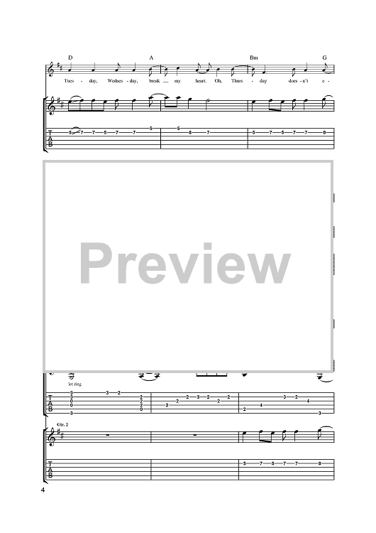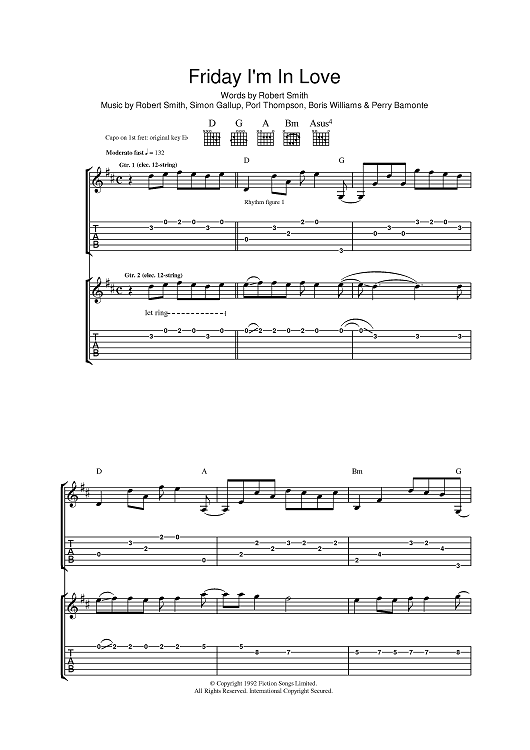 Digital Sheet Music for Friday I'm In Love by Wolfman Jack, Perry Bamonte, The Cure, Simon Gallup, Porl Thompson, Boris Williams scored for Guitar Tab; id:396179