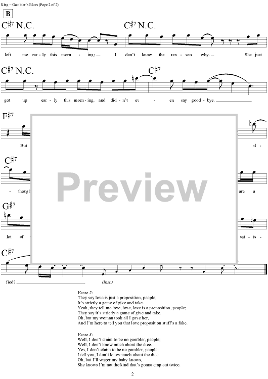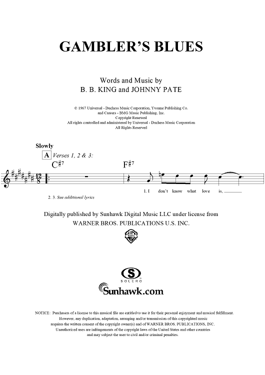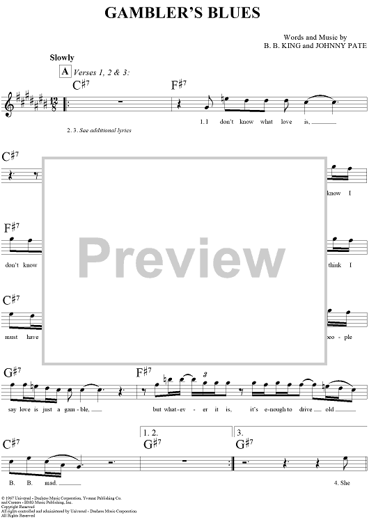 Digital Sheet Music for Gambler's Blues by B.B. King, Johnny Pate scored for Lead Sheet; id:291016