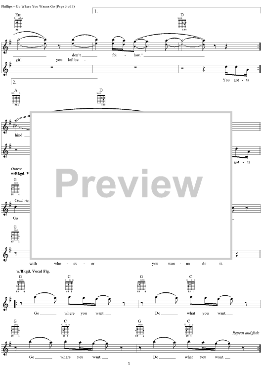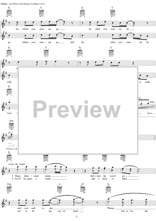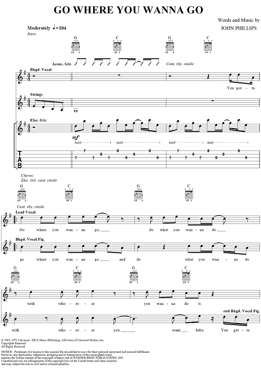 Digital Sheet Music for Go Where You Wanna Go by The Mamas and The Papas, John Phillips scored for Guitar Tab/Vocal; id:286884