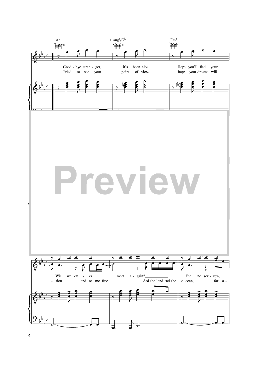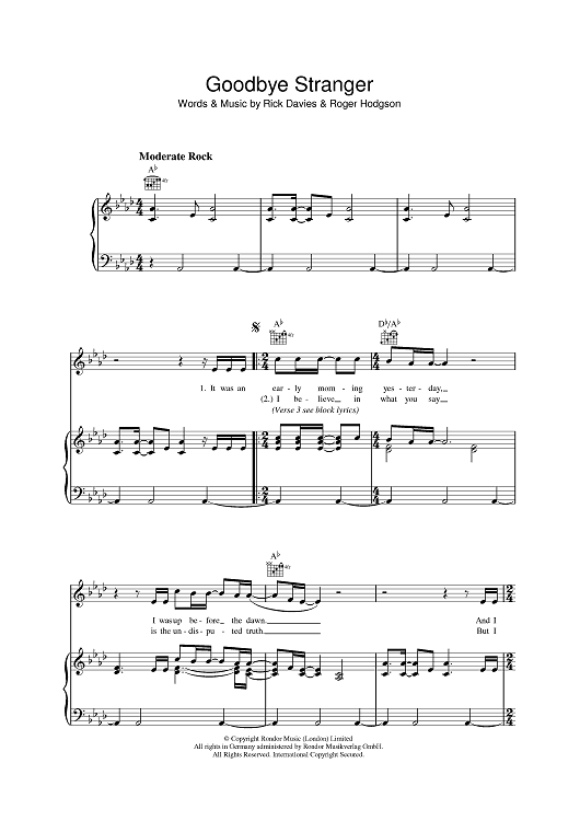 Digital Sheet Music for Goodbye Stranger by Rick Davies, Roger Hodgson, Supertramp scored for Piano/Vocal/Chords; id:394669