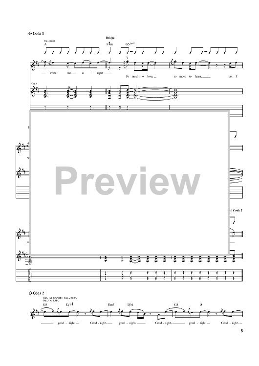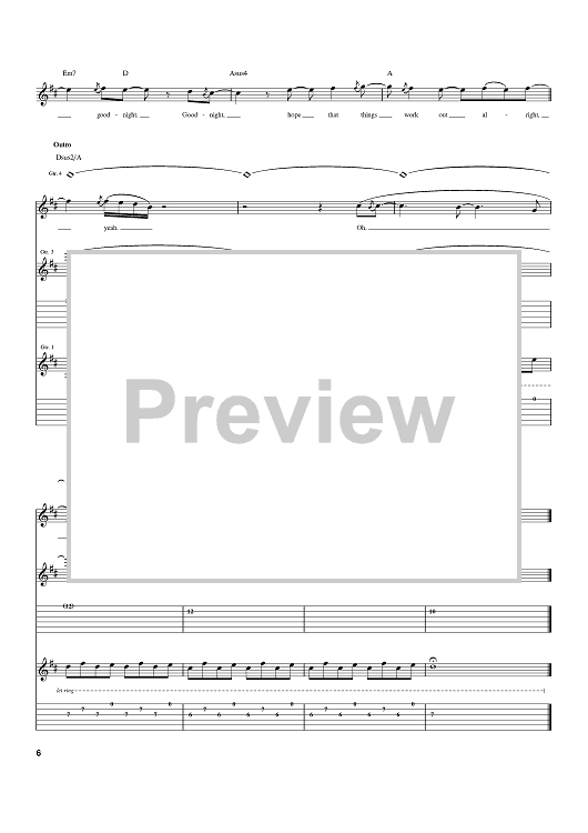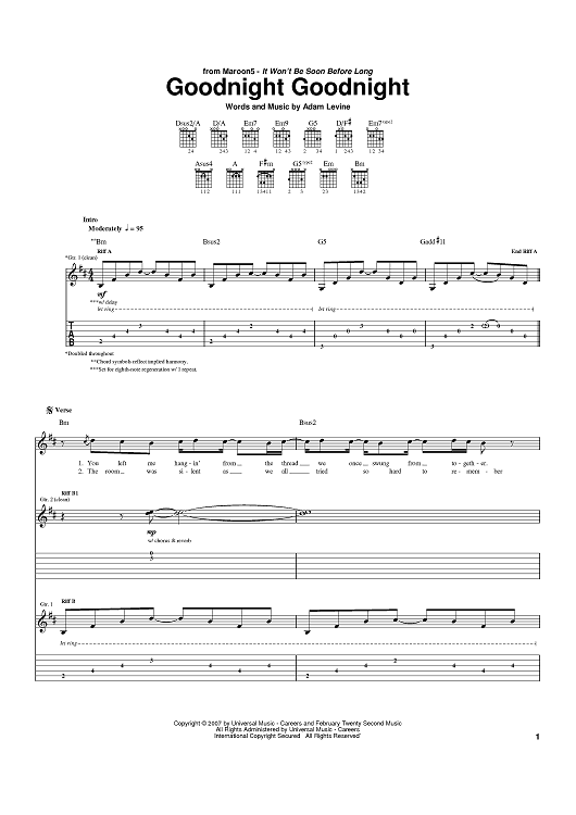 Digital Sheet Music for Goodnight Goodnight by Adam Levine, Maroon 5 scored for Guitar Tab; id:401090