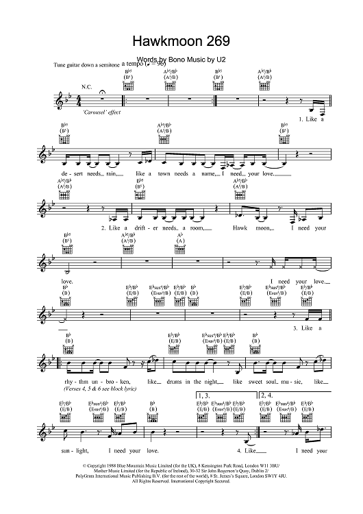 Digital Sheet Music for Hawkmoon 269 by U2 scored for Lead Sheet; id:375626