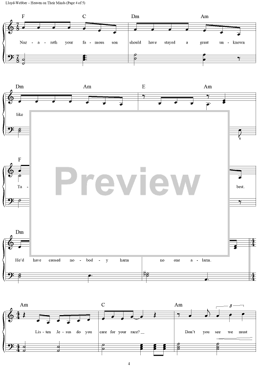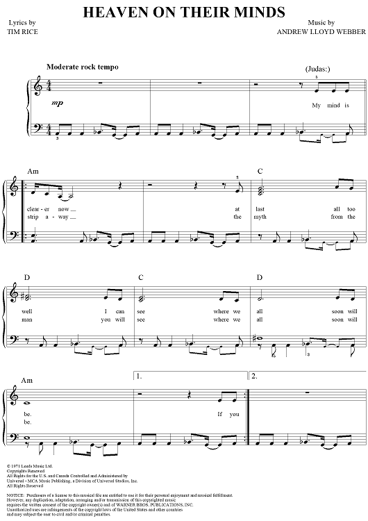 Digital Sheet Music for Heaven on Their Minds by Andrew Lloyd Webber, Tim Rice, Denes Agay scored for Easy Piano/Vocal; id:296499