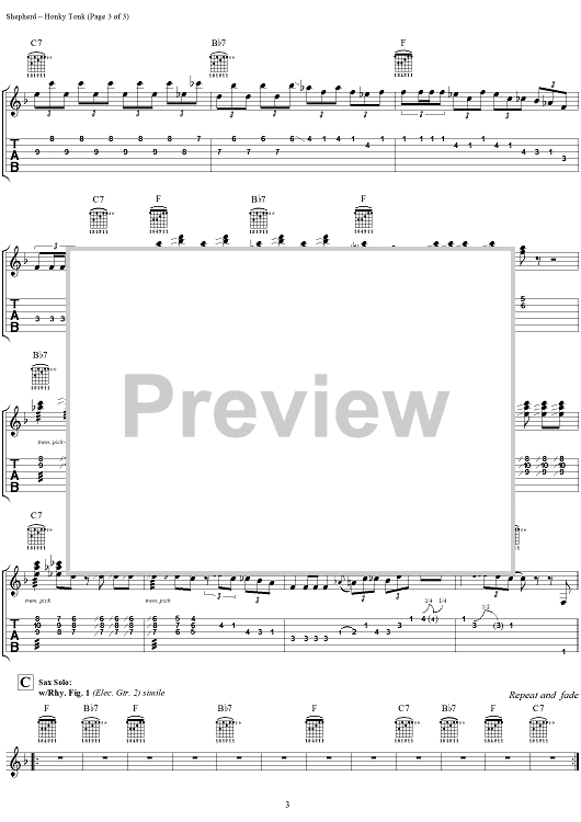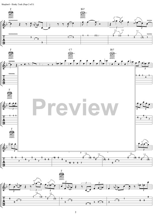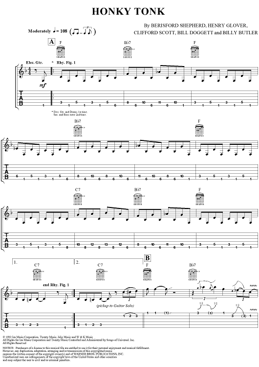 Digital Sheet Music for Honky Tonk by Lonnie Mack, Billy Butler, Henry Glover, Berisford Shepherd, Clifford Scott, Bill Doggett scored for Guitar Tab; id:234595
