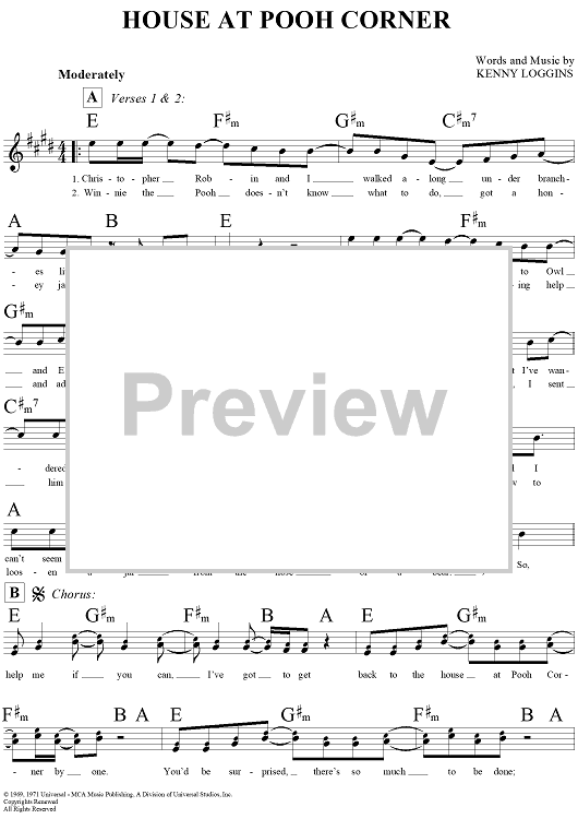 "House At Pooh Corner" Sheet Music by Kenny Loggins