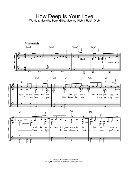 Digital Sheet Music for How Deep Is Your Love by Bee Gees scored for Piano; id:375645