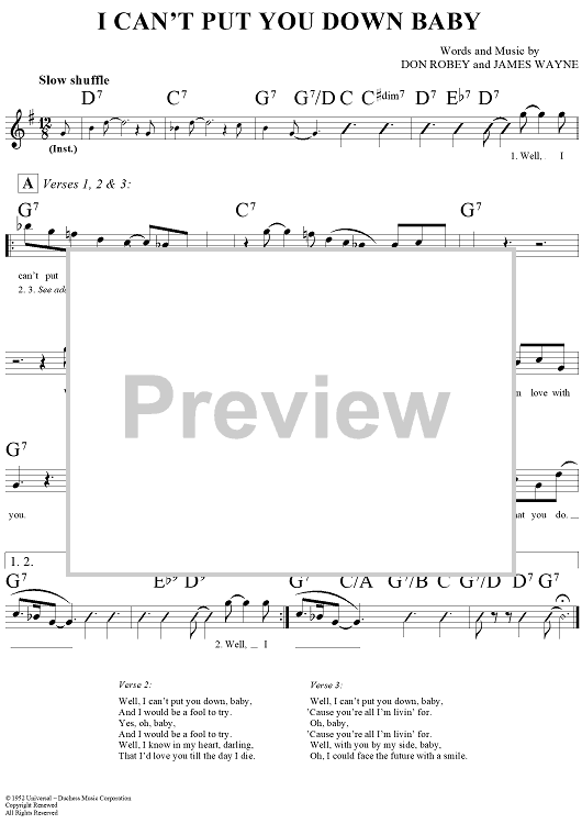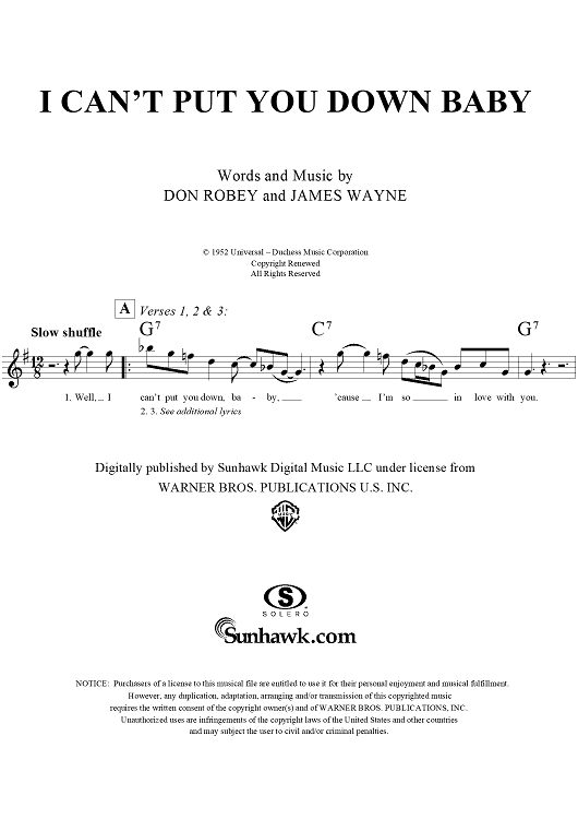 Digital Sheet Music for I Can't Put You Down Baby by Don Robey, James Wayne scored for Lead Sheet; id:291071