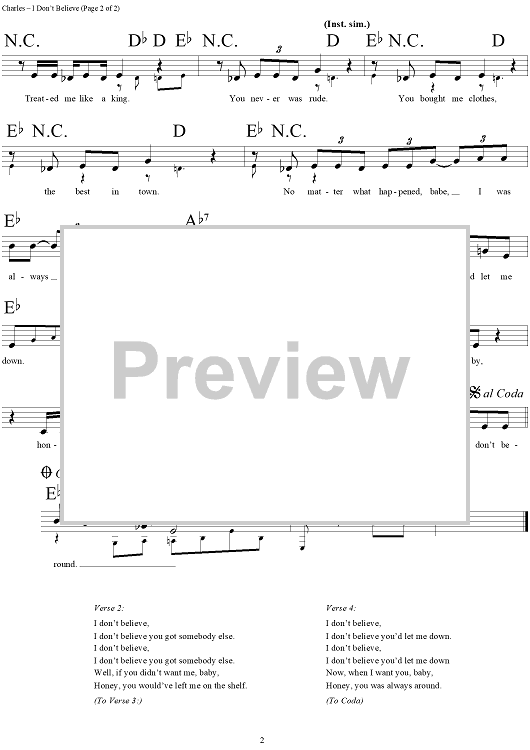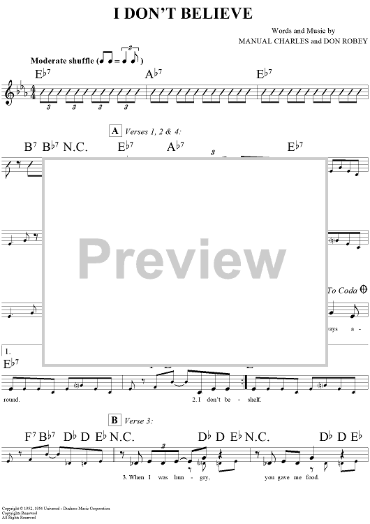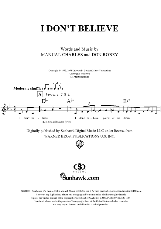 Digital Sheet Music for I Don't Believe by Don Robey, Manual Charles scored for Lead Sheet; id:291264