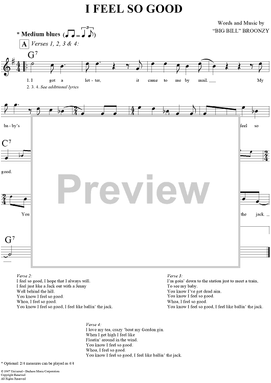 Digital Sheet Music for I Feel So Good by Big Bill Broonzy scored for Lead Sheet; id:291266