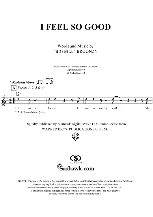 "I Feel So Good" Sheet Music by Big Bill Broonzy