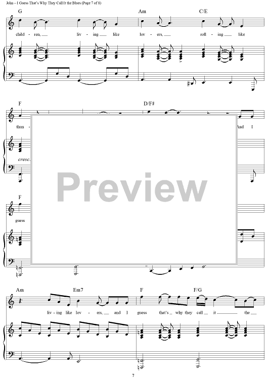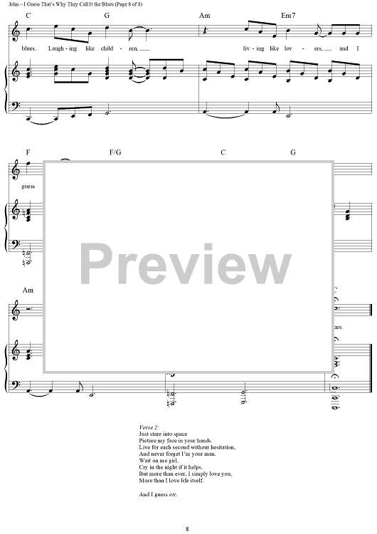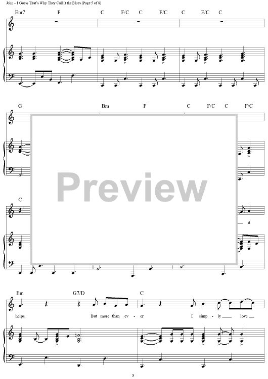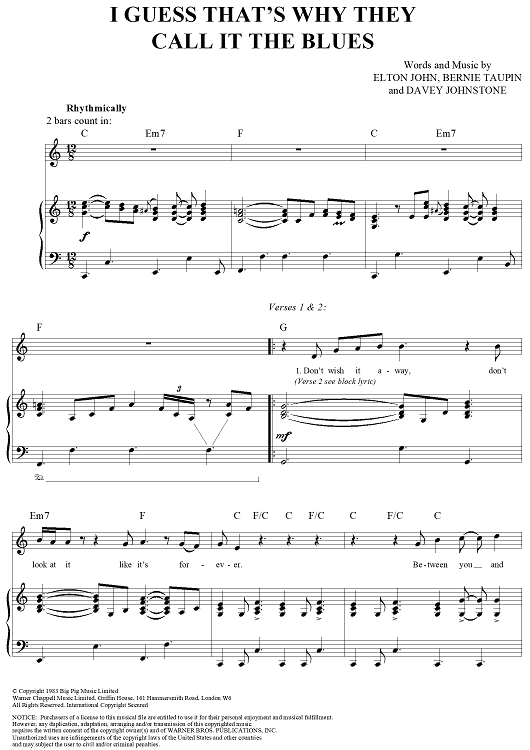 Digital Sheet Music for I Guess That's Why They Call it the Blues by Elton John, Bernie Taupin, Davey Johnstone scored for Piano/Vocal/Chords; id:284117