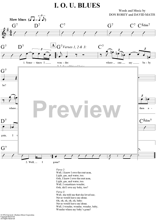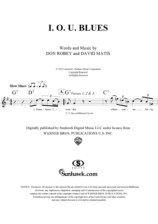 Digital Sheet Music for I. O. U. Blues by Don Robey, David Matis scored for Lead Sheet; id:291334